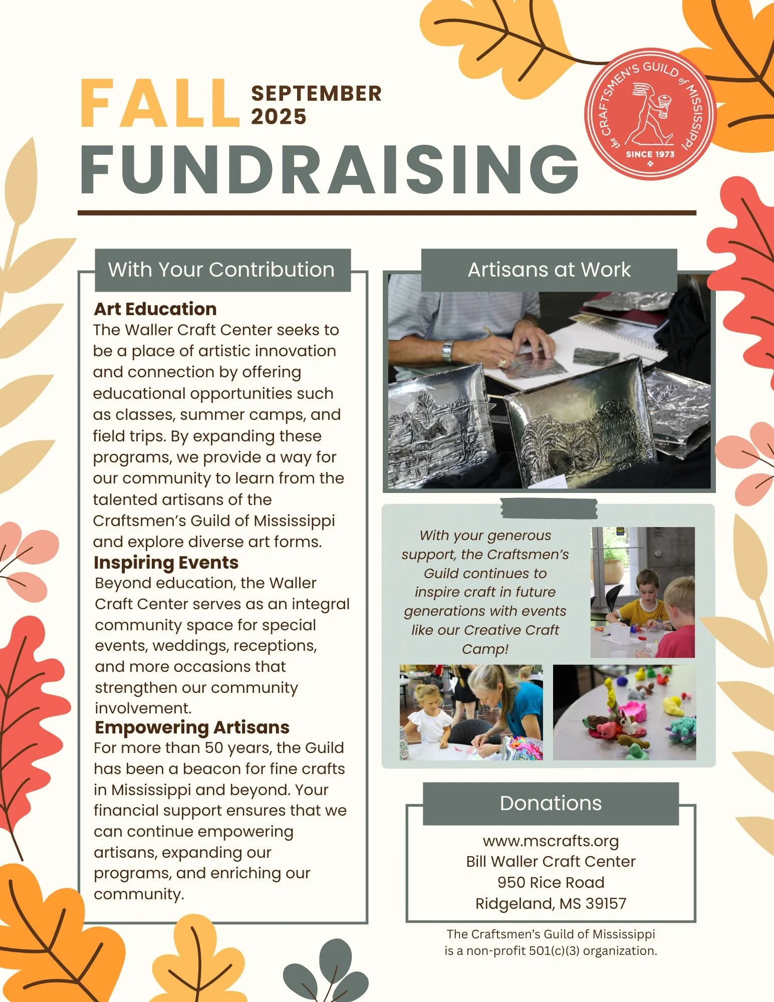 Don’t miss news, events, classes, special shopping offers, summer camps, and more at the Craftsmen's Guild of Mississippi!