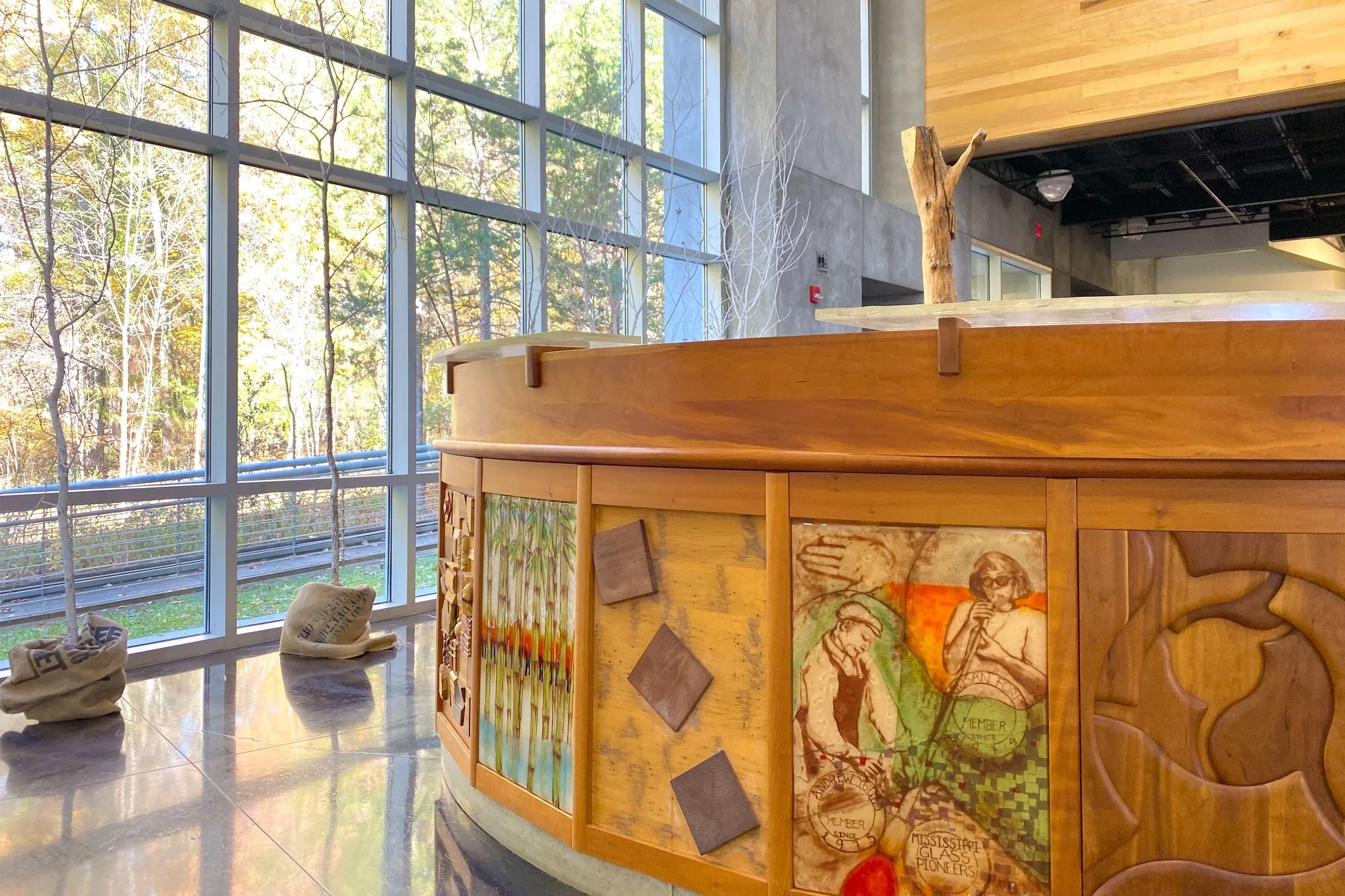 The architecture of the 20,000-square-foot William “Bill” Waller Craft Center is spacious and inspiring, framing the natural setting and serving as the heart of the Craftsmen’s Guild of Mississippi.
